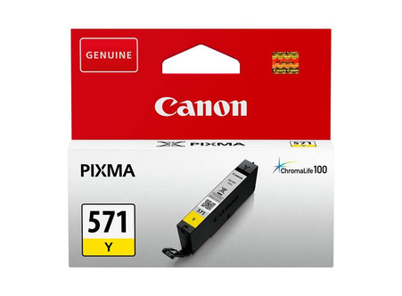Originální inkoust Canon s referenčním číslem CLI-571Y / 0388C001. Výtěžnost 350 stran. Výrobek pochází z oficiální distribuce značky Canon. Balení obsahuje 1 kus tiskového náplně žluté barvy.