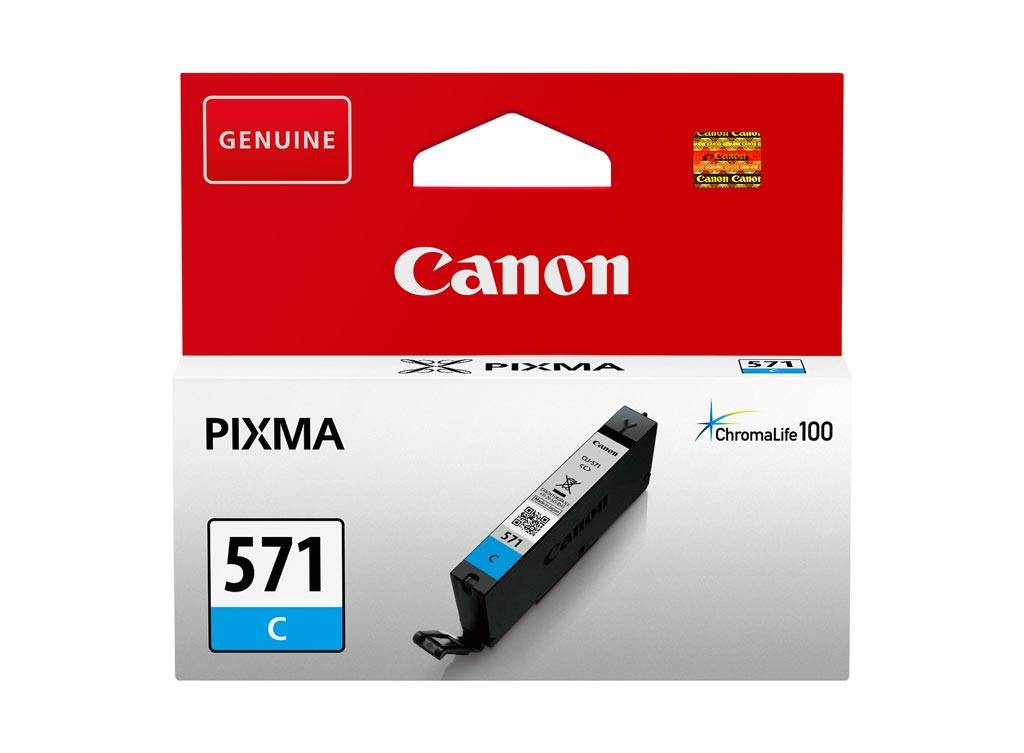 Originální inkoust Canon s referenčním číslem CLI-571C / 0386C001. Výtěžnost 350 stran. Výrobek pochází z oficiální distribuce značky Canon. Balení obsahuje 1 kus tiskového stroje v modré barvě.