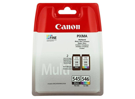 Originální inkousty Canon, sada se symbolem PG-545 + CL-546 / 8287B005. Výtěžnost 180 stran černé, 180 stran barevné. Výrobek pochází z oficiální distribuce značky Canon. Balení obsahuje 2 tiskové jednotky černé, modré, purpurové a žluté barvy.