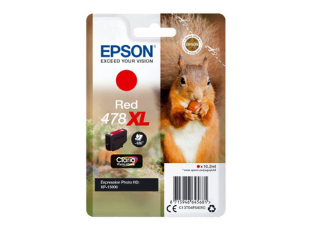 Originální inkoust Epson se symbolem 478XL / T04F5, C13T04F54010. Výtěžnost 830 stran. Výrobek pochází z oficiální distribuce značky Epson. Balení obsahuje 1 kus tisku v červené barvě.