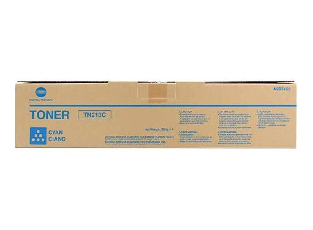 Originální tonerová kazeta Konica Minolta TN213C / A0D7452. Výtěžnost 19 000 stran. Výrobek pochází z oficiální distribuce značky Konica Minolta. Balení obsahuje 1 kus tiskového náplně v modré barvě.