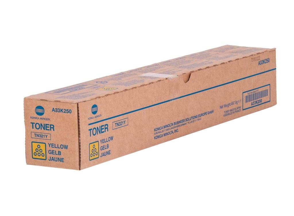Originální tonerová kazeta Konica Minolta TN321Y / A33K250. Výtěžnost 25 000 stran. Produkt pochází z oficiální distribuce značky Konica Minolta. Balení obsahuje 1 kus tiskové barvy žluté.
