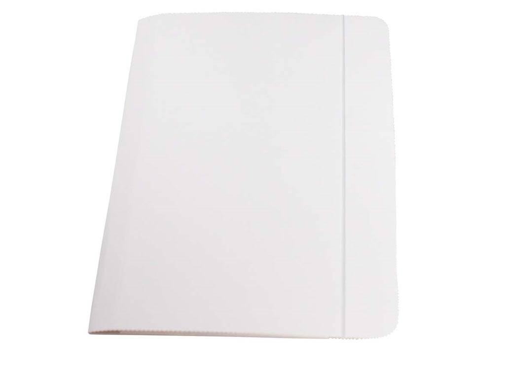 Složka s pružnou páskou z ekologické bílošedé lepenky třídy GD, bez kyselin s pH 7,5-9,5 a alkalickou rezervou nad 0,4 mol/kg. Po delší straně je opatřen gumičkou a má tři vnitřní chlopně, které zabraňují vypadávání dokumentů.
