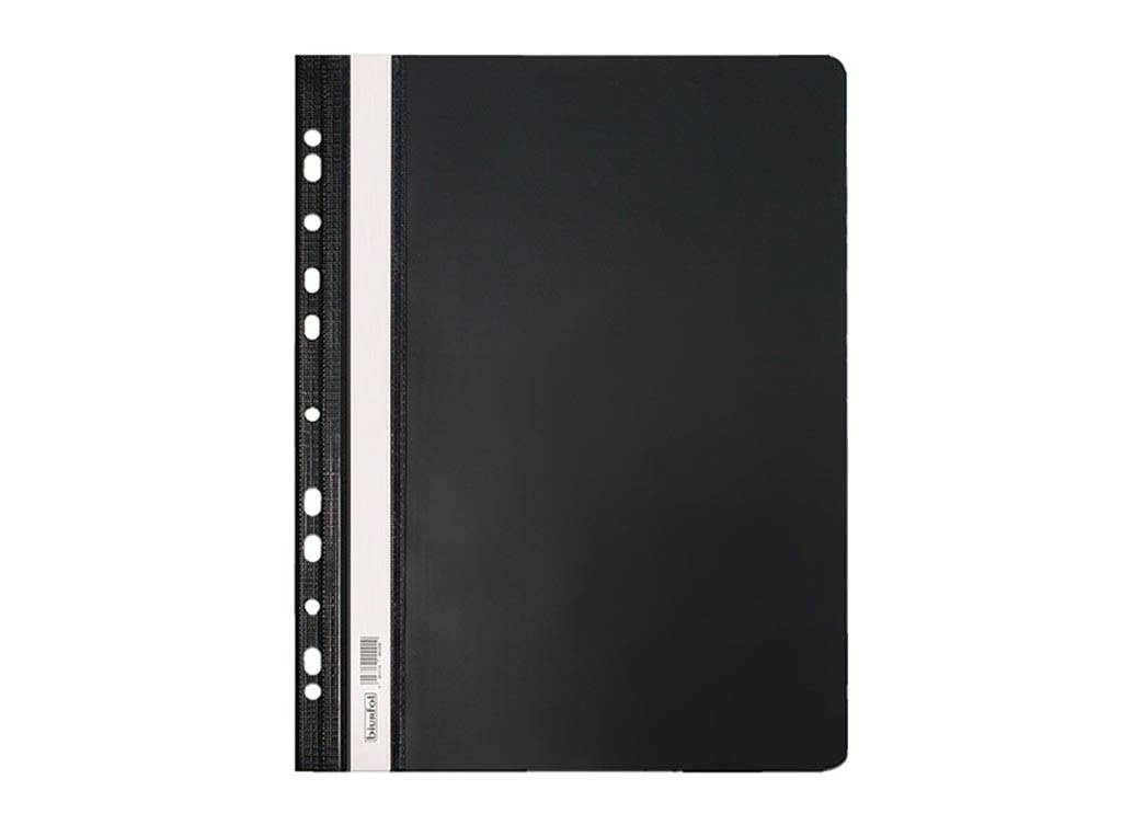 Složka z pevného a tuhého PVC. Průhledná pevná přední strana, barevná zadní strana. Papírový proužek se štítkem, zaoblené rohy na obou deskách, boční perforace pro uchycení do libovolného kroužkového pořadače.