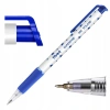 Automatické kuličkové pero s plastovým tělem ve tvaru třesku, klipem v barvě inkoustu a gumovým úchopem, odolnou kuličkou z karbidu wolframu o průměru 0,5 mm. Patentovaná náplň Floating Ball od švýcarské společnosti Premec se super tenkým písmem.
