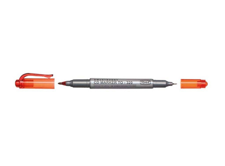 Permanentní popisovač s voděodolným inkoustem, ideální pro psaní na CD. Oboustranný: 2 hroty: 0,8 mm kuželový, 0,5 mm jehlový, červená barva.