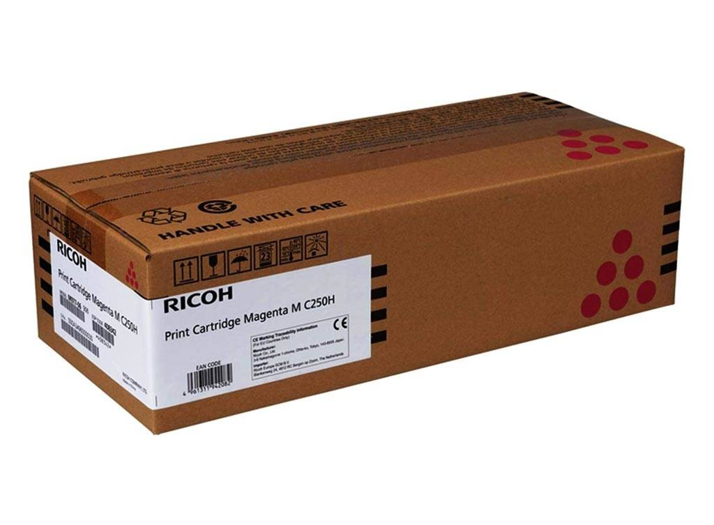 Originální tonerová kazeta Ricoh M C250H / 408342. výtěžnost 6 300 stran. Tento produkt pochází z oficiální distribuční sítě Ricoh. Každé balení obsahuje 1 purpurovou tonerovou kazetu.