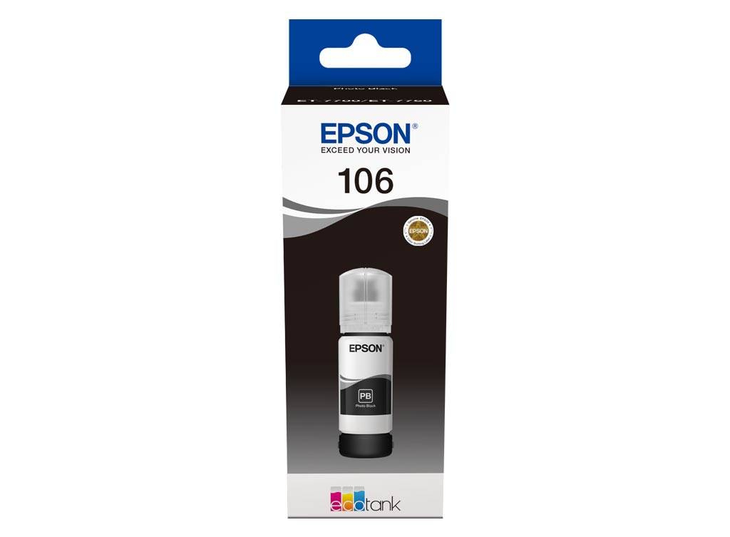 Originální inkoust Epson se symbolem 106 / C13T00R140. Výtěžnost 5000 stran. Výrobek pochází z oficiální distribuce značky Epson. Balení obsahuje 1 kus tiskařské černé barvy.
