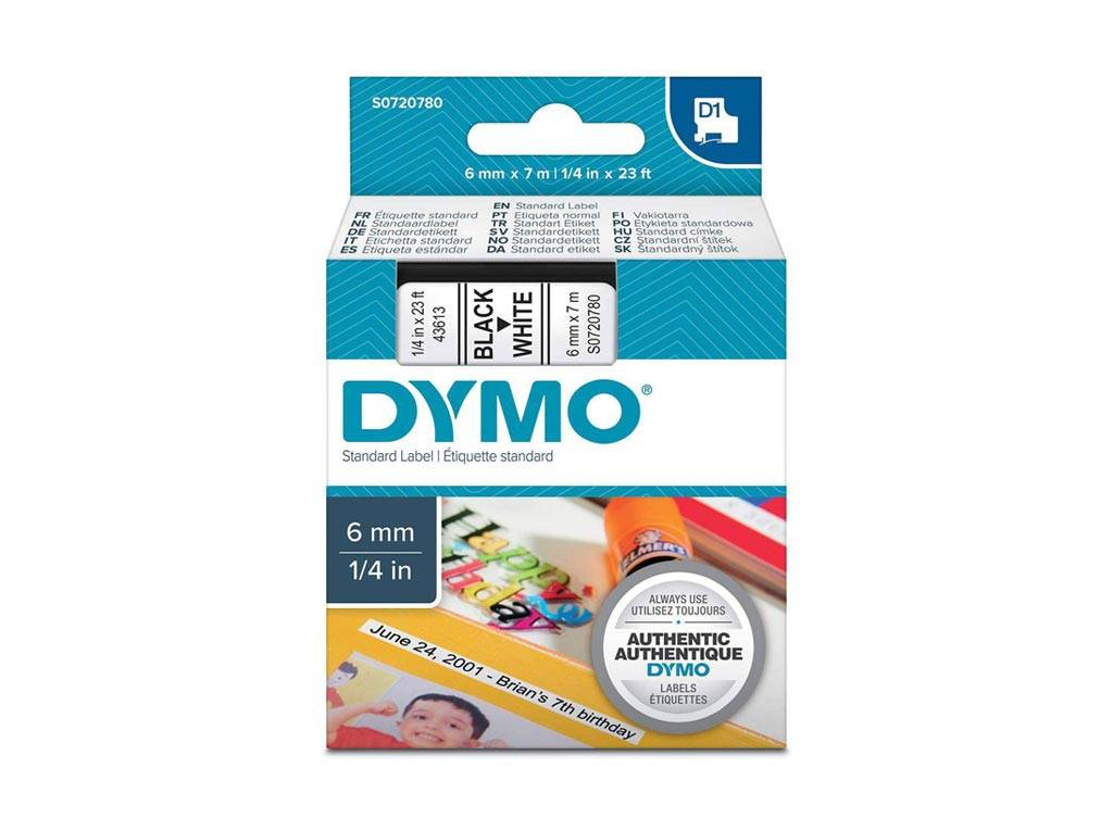 Originální páska Dymo se symbolem D1 / 43613, S0720780. Výstup 7 metrů. Výrobek pochází z oficiální distribuce značky Dymo. Balení obsahuje 1 kus černobílého potisku.
