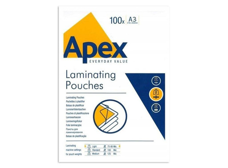 Laminovací fólie Apex poskytuje vynikající ochranu a vzhled dokumentů, chrání dokumenty před vlhkostí, prachem a poškozením, zvyšuje kontrast a barevnost fotografií, umožňuje vytvářet různé materiály doma i v kanceláři, ideální pro ochranu poznámek a fotografií, formát A3, balení 100 ks, tloušťka: 70/80 mic.