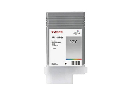 Originální inkoust Canon PFI-101PGY / 0893B001. Kapacita 130 ml. Výrobek pochází z oficiální distribuce značky Canon. Balení obsahuje 1 kus tisku v barvě foto šedé.