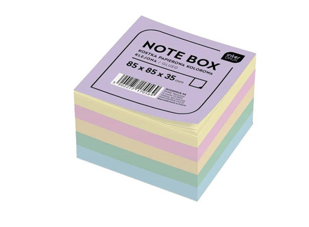 Barevný poznámkový blok s lepicí podložkou, velikost 8,5 x 8,5 x 35 mm, obsahuje 350 listů.