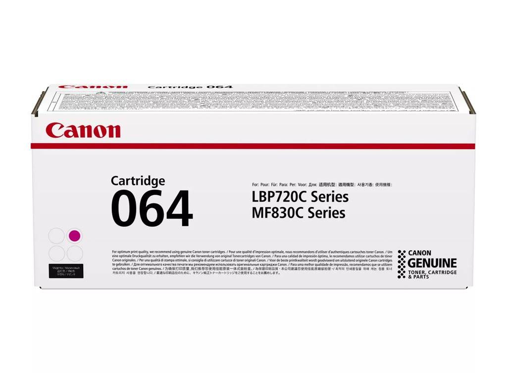 Originální tonerová kazeta Canon ref. 064. Výtěžnost 5000 stran. Produkt pochází z oficiální distribuce značky Canon. Balení obsahuje 1 tiskovou jednotku v purpurové barvě.