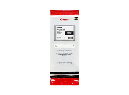 Originální inkoust Canon PFI-320MBK / 2889C001. Kapacita 300 ml. Výrobek pochází z oficiální distribuce značky Canon. Balení obsahuje 1 kus tiskového nátěru v matné černé barvě.