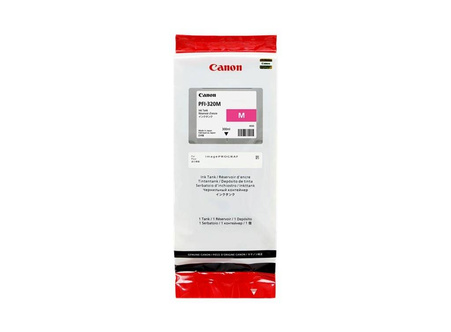 Originální inkoust Canon PFI-320M / 2892C001. Kapacita 300 ml. Výrobek pochází z oficiální distribuce značky Canon. Balení obsahuje 1 kus tiskového náplně v purpurové barvě.