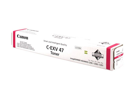 Originální tonerová kazeta Canon C-EXV 47. Výtěžnost 21500 stran. Produkt pochází z oficiální distribuce značky Canon. Balení obsahuje 1 tiskovou jednotku v purpurové barvě.