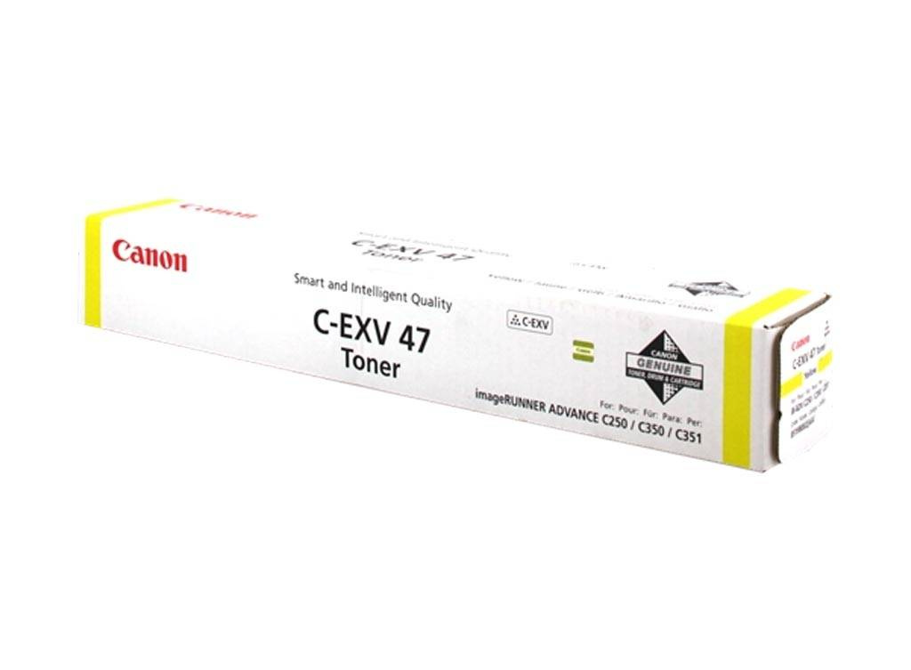 Originální tonerová kazeta Canon C-EXV 47. Výtěžnost 21500 stran. Produkt pochází z oficiální distribuce značky Canon. Balení obsahuje 1 žlutou tonerovou kazetu.
