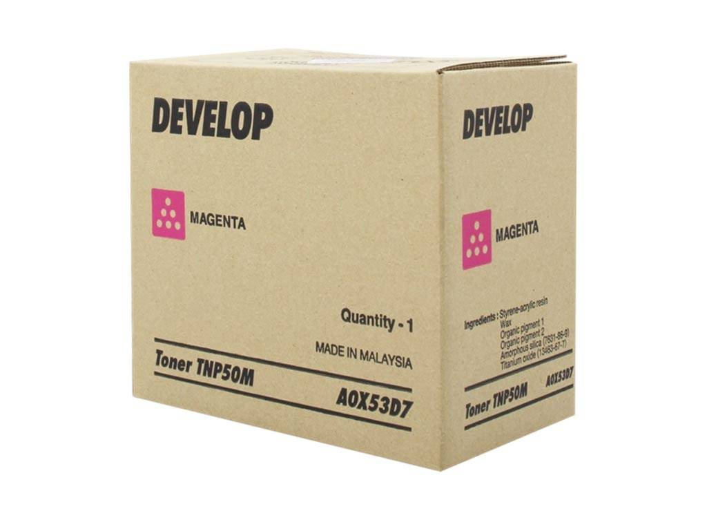 Originální vývojový toner se symbolem TNP50M / A0X53D7. Kapacita 5000 stran. Produkt pochází z oficiální distribuce značky Develop. Balení obsahuje 1 kus tisku v purpurové barvě.