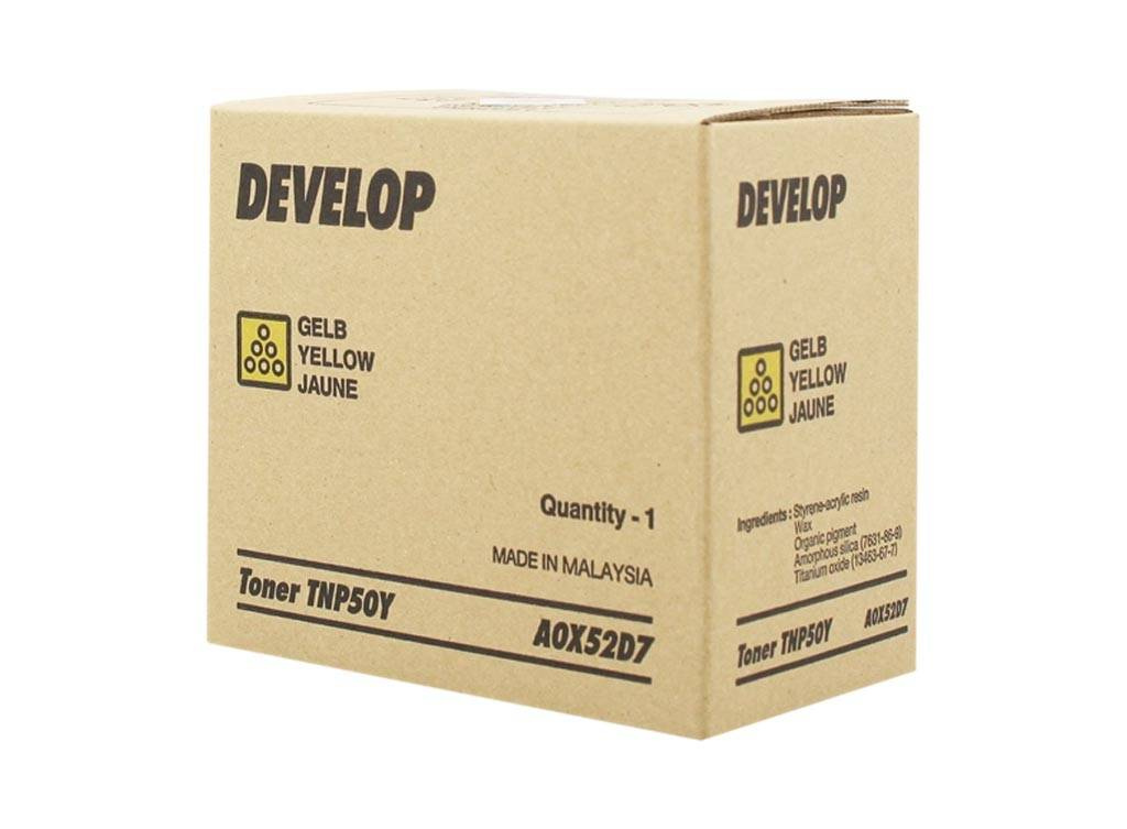 Originální vývojový toner se symbolem TNP50Y / A0X52D7. Kapacita 5000 stran. Produkt pochází z oficiální distribuce značky Develop. Balení obsahuje 1 kus tisku ve žluté barvě.