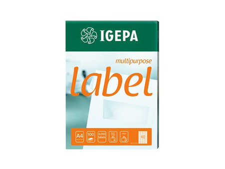 Samolepicí etikety Igepa. Barva: bílá, velikost štítku: velikost: 96,5 x 42,3 mm. Počet listů: počet listů: 100, počet štítků: 100. Používají se při: označování složek, dokumentů, balíků, korespondence. Použití v inkoustových, laserových a kopírovacích tiskárnách (podle údajů výrobce tiskárny).
