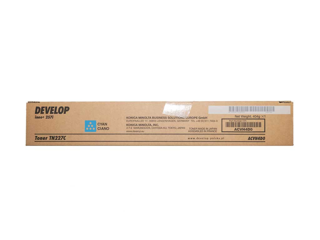 Originální toner Develop se symbolem TN227C / ACVH4D0. Kapacita 24000 stran. Výrobek pochází z oficiální distribuce značky Develop. Balení obsahuje 1 kus tisku v modré barvě.