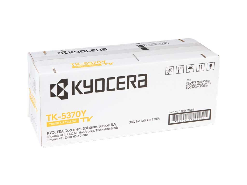 Originální toner Kyocera se symbolem TK-5370Y / 1T02YJANL0. Kapacita 5000 stran. Výrobek pochází z oficiální distribuce značky Kyocera. Balení obsahuje 1 kus tiskového toneru žluté barvy.