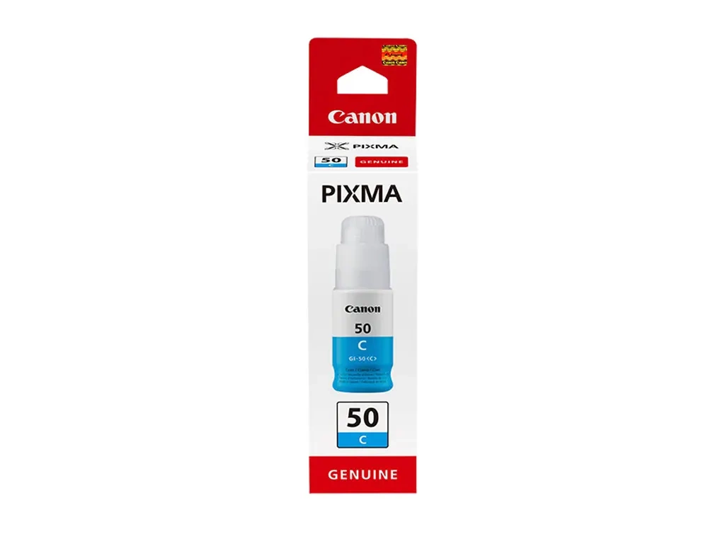Originální inkoust Canon se symbolem GI-50C / 3403C001. Výtěžnost 7700 stran. Výrobek pochází z oficiální distribuce značky Canon. Balení obsahuje 1 kus modré tiskové barvy.