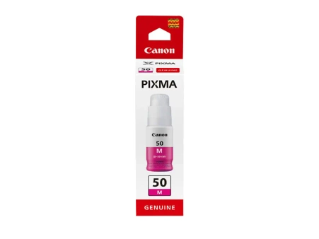 Originální inkoust Canon se symbolem GI-50M / 3404C001. Výtěžnost 7700 stran. Výrobek pochází z oficiální distribuce značky Canon. Balení obsahuje 1 tiskovou jednotku purpurové barvy.