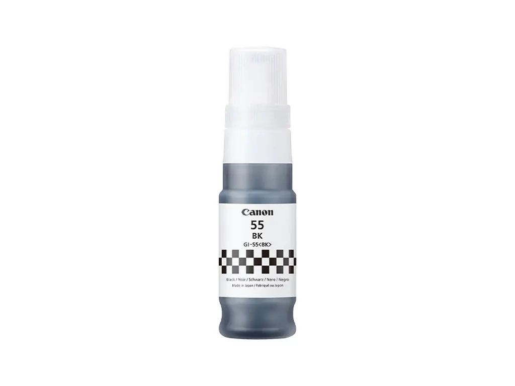 Originální inkoust Canon se symbolem GI-55BK / 6292C001. Kapacita 3000 stran. Výrobek pochází z oficiální distribuce značky Canon. Balení obsahuje 1 kus tiskařské černé barvy.
