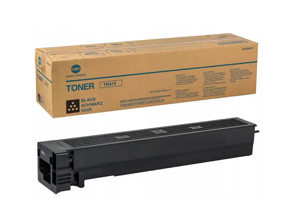 Originální tonerová kazeta Konica Minolta TN413 / A0TM151. Výtěžnost 45 000 stran. Produkt pochází z oficiální distribuce značky Konica Minolta. Balení obsahuje 1 kus tiskové kazety v černé barvě.