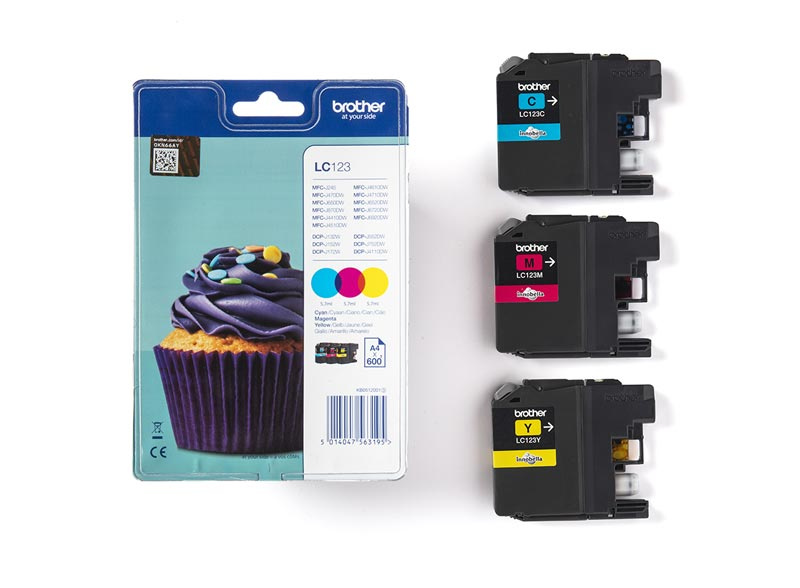 Originální inkousty Brother, trojbalení se symbolem LC123RBWBP. Kapacita 3x 600 stran. Výrobek pochází z oficiální distribuce značky Brother. Balení obsahuje 3 kusy tiskových barev modré, purpurové a žluté.
