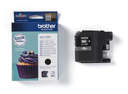 Originální inkoust Brother se symbolem LC123BK. Kapacita 600 stran. Výrobek pochází z oficiální distribuce značky Brother. Balení obsahuje 1 kus tiskařské černé barvy.