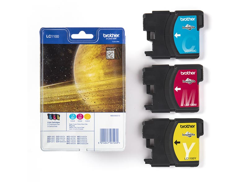 Originální inkousty Brother, trojbalení se symbolem LC1100RBWBP. Kapacita 3x 325 stran. Výrobek pochází z oficiální distribuce značky Brother. Balení obsahuje 3 kusy tiskových barev modré, purpurové a žluté.