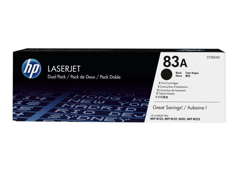 Originální toner HP, dvojbalení se symbolem 83A / CF283AD. Výtěžnost 3000 stran (2x 1500 stran). Produkt pochází z oficiální distribuce značky HP. Balení obsahuje 2 kusy s tiskem v černé barvě.