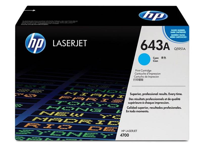 Originální toner HP se symbolem 643A / Q5951A. Kapacita 10000 stran. Produkt pochází z oficiální distribuce značky HP. Balení obsahuje 1 kus tisku v modré barvě.