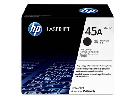 Originální toner HP se symbolem 45A / Q5945A. Kapacita 18000 stran. Produkt pochází z oficiální distribuce značky HP. Balení obsahuje 1 kus tisku v černé barvě.