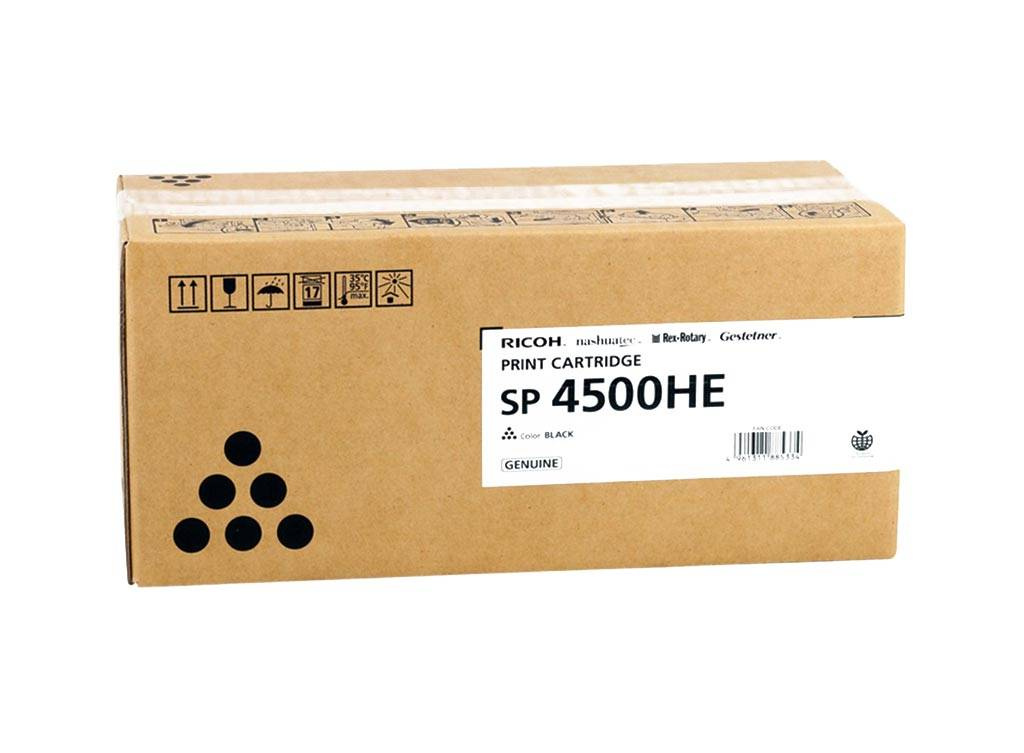 Originální tonerová kazeta Ricoh SP 4500HE / 407318. Výtěžnost 12 000 stran. Tento produkt pochází z oficiální distribuční sítě Ricoh. Balení obsahuje 1 kus tisku v černé barvě.