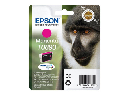 Originální inkoust Epson se symbolem T0893 / C13T08934011. Výtěžnost 135 stran. Výrobek pochází z oficiální distribuce značky Epson. Balení obsahuje 1 kus tisku v purpurové barvě.