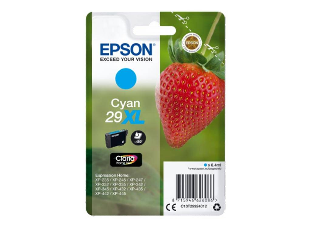 Originální inkoust Epson se symbolem 29XL / T2992, C13T29924012. Výtěžnost 450 stran. Výrobek pochází z oficiální distribuce značky Epson. Balení obsahuje 1 kus tisku v modré barvě.