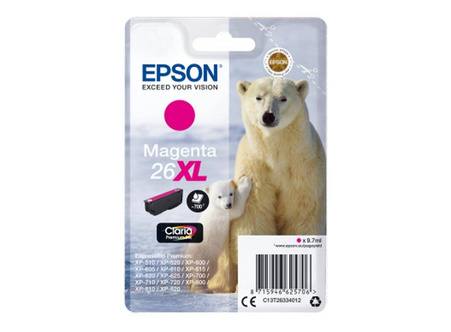 Originální inkoust Epson se symbolem 26XL / T2633, C13T26334012. Výtěžnost 700 stran. Výrobek pochází z oficiální distribuce značky Epson. Balení obsahuje 1 tiskovou jednotku v purpurové barvě.
