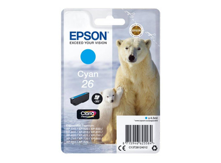 Originální inkoust Epson se symbolem 26 / T2612, C13T26124012. Výtěžnost 300 stran. Výrobek pochází z oficiální distribuce značky Epson. Balení obsahuje 1 kus tisku v modré barvě.