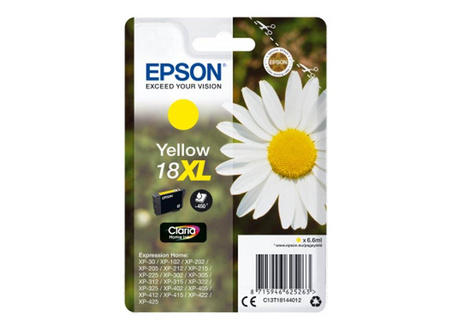 Originální inkoust Epson se symbolem 18XL / T1814, C13T18144012. Výtěžnost 450 stran. Výrobek pochází z oficiální distribuce značky Epson. Balení obsahuje 1 kus tiskoviny ve žluté barvě.