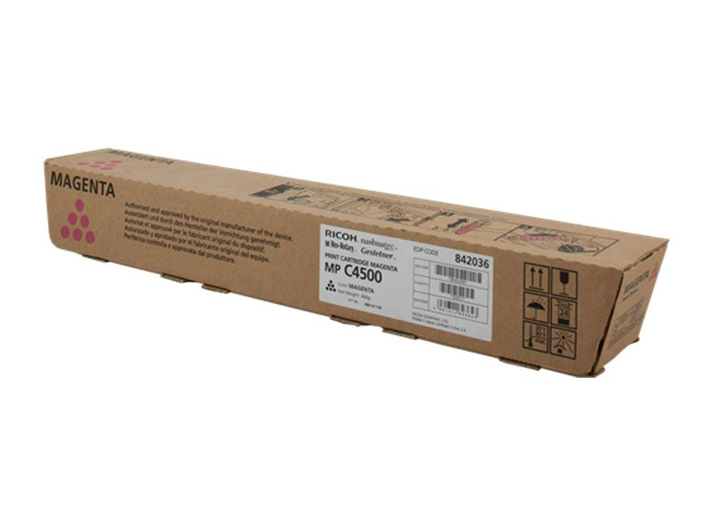 Originální toner Ricoh MP C4500E / 842036. výtěžnost 17000 stran. Tento produkt pochází z oficiální distribuční sítě Ricoh. Každé balení obsahuje 1 purpurovou tonerovou kazetu.