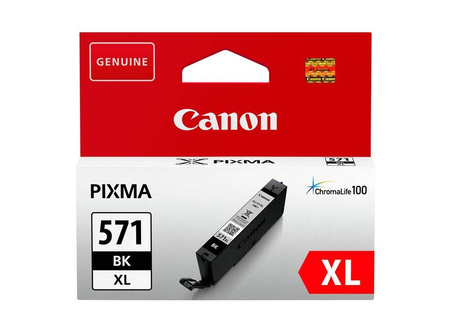 Originální inkoust Canon s referenčním označením CLI-571XL BK / 0331C001. Výtěžnost 895 stran. Výrobek pochází z oficiální distribuce značky Canon. Balení obsahuje 1 kus tiskového nátěru v černé barvě.