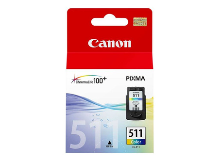 Originální inkoust Canon se symbolem CL-511 / 2972B001. Výtěžnost 240 stran. Výrobek pochází z oficiální distribuce značky Canon. Balení obsahuje 1 kus tiskového nátěru v modré, purpurové a žluté barvě.