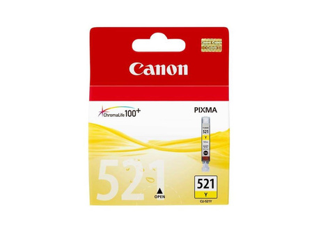 Originální inkoust Canon s referenčním číslem CLI-521Y / 2936B001. Výtěžnost 440 stran. Výrobek pochází z oficiální distribuce značky Canon. Balení obsahuje 1 kus tiskového náplně žluté barvy.
