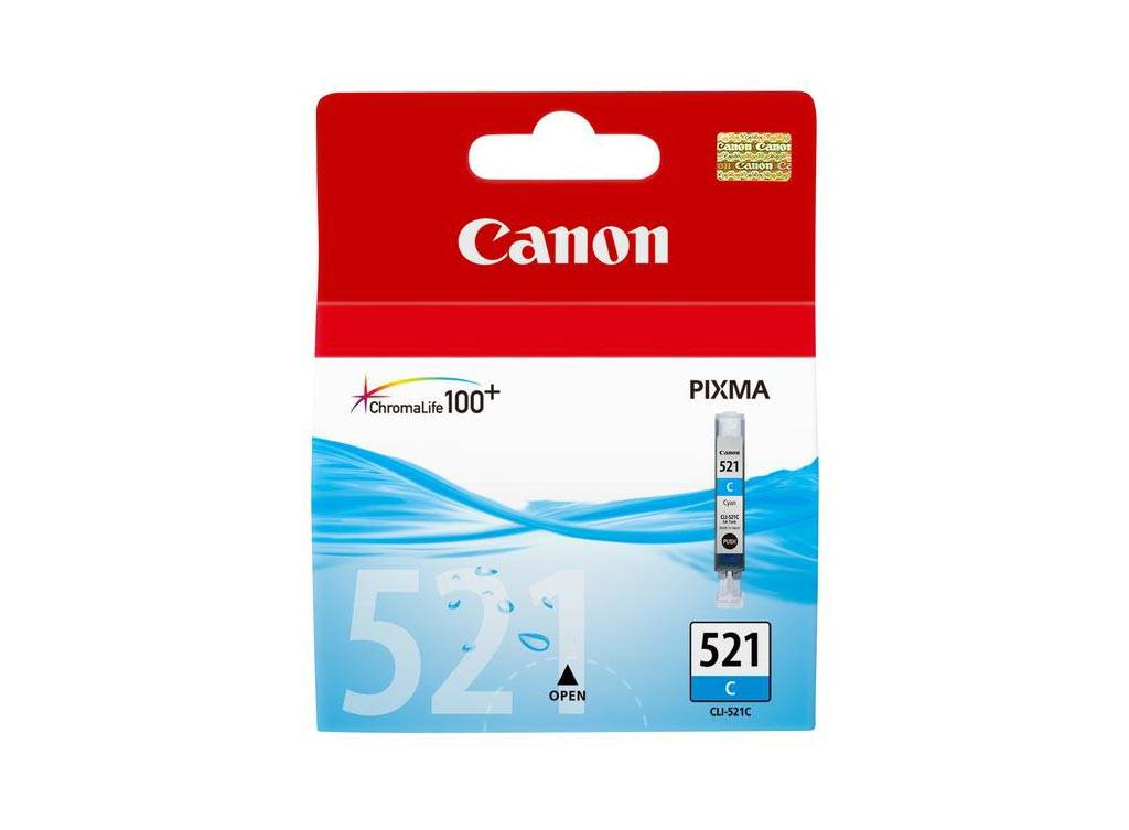 Originální inkoust Canon s referenčním číslem CLI-521C / 2934B001. Výtěžnost 440 stran. Výrobek pochází z oficiální distribuce značky Canon. Balení obsahuje 1 kus tiskového nátěru v modré barvě.