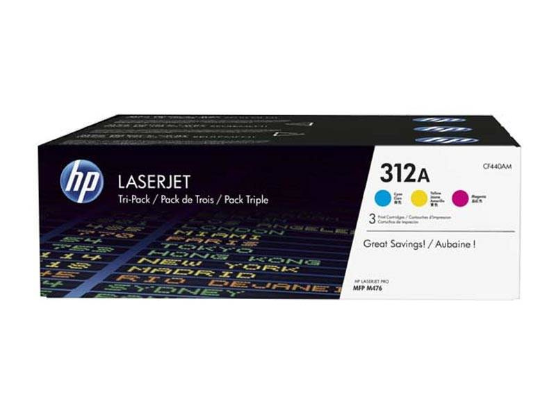 Originální tonerové kazety HP, trojbalení se symbolem 312A / CF440AM. Výtěžnost 8100 stran (3x 2700 stran). Produkt pochází z oficiální distribuce značky HP. Balení obsahuje 3 tiskové jednotky v modré, purpurové a žluté barvě.
